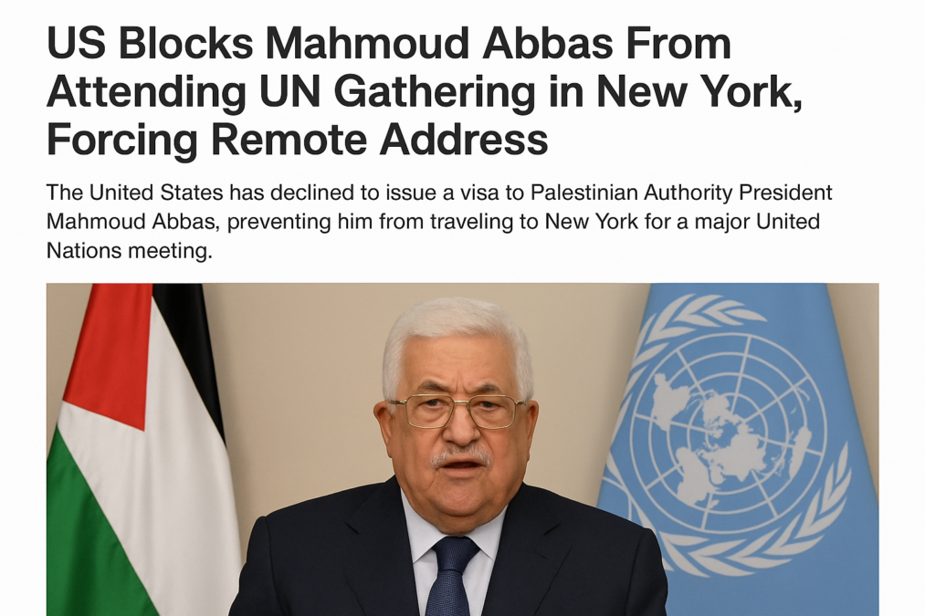 The United States has declined to issue a visa to Palestinian Authority President Mahmoud Abbas. This decision prevents him from traveling to New York for a major United Nations meeting. The decision has escalated diplomatic tensions. It has also drawn criticism from several countries. They argue that the move undermines the spirit of international cooperation at the UN.